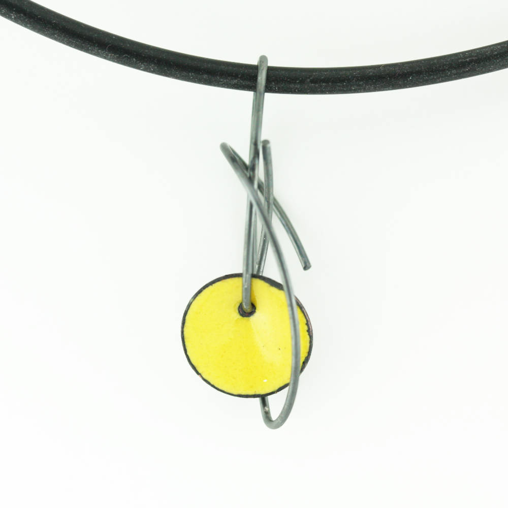 Het mag ook eens met kleur! Deze moderne hanger, geel geëmailleerd, valt onmiddellijk op. En dat mag ook. Deze past perfect voor een avondje uit, een mooie frisse gele kleur!